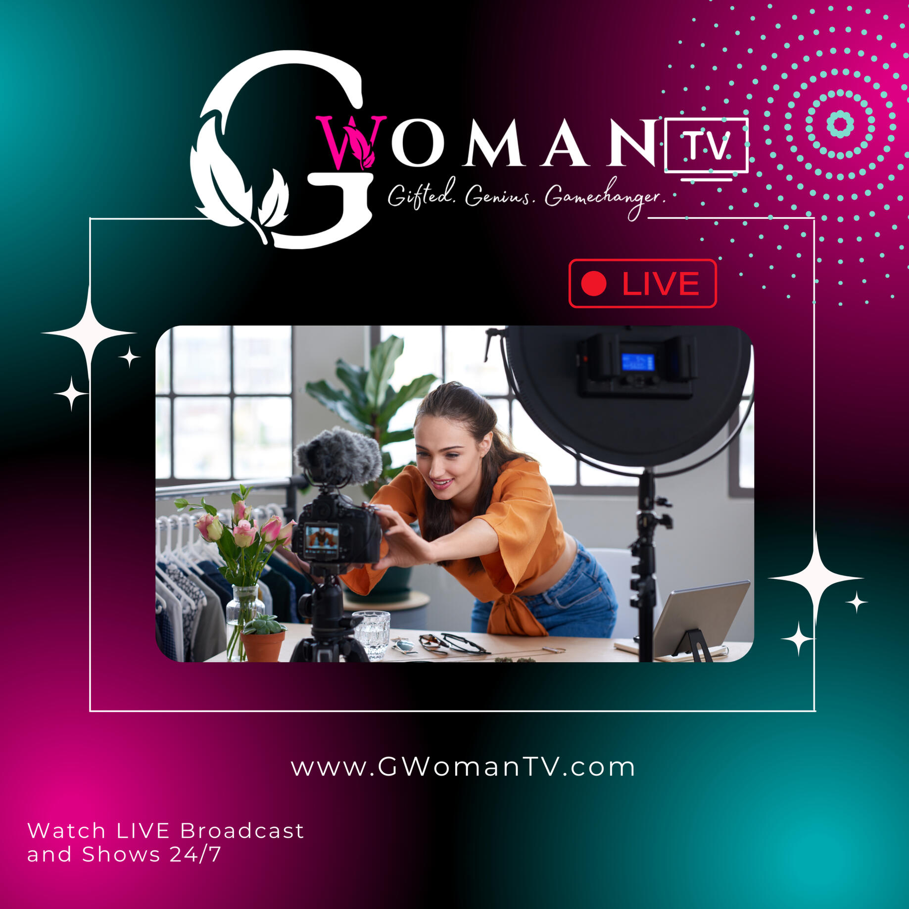 G-Woman TV is a women-centric 24-hour global television network for Gifted, Genius and Gamechanging women, broadcasting original LIVE shows and on-demand video programming worldwide, creatively connecting the world through innovative visual content, stories, cultures and diversity like documentaries, short films, feature films, drama series, talk shows and video podcasts. Our linear TV station and streaming platform celebrate the faces of women across various backgrounds, races, age groups and personal experiences.Our viewers can tune in from around the world through our OTT Platform and station app to catch live shows and more. GW TV station officially launches on March 1, 2025. Be the first VIP to hear when we go LIVE.